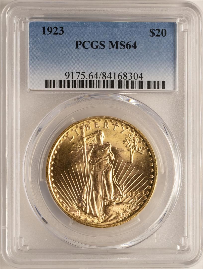 One 1923 $20 St. Gaudens Double Eagle Gold Coin PCGS MS64. PCGS Graded.