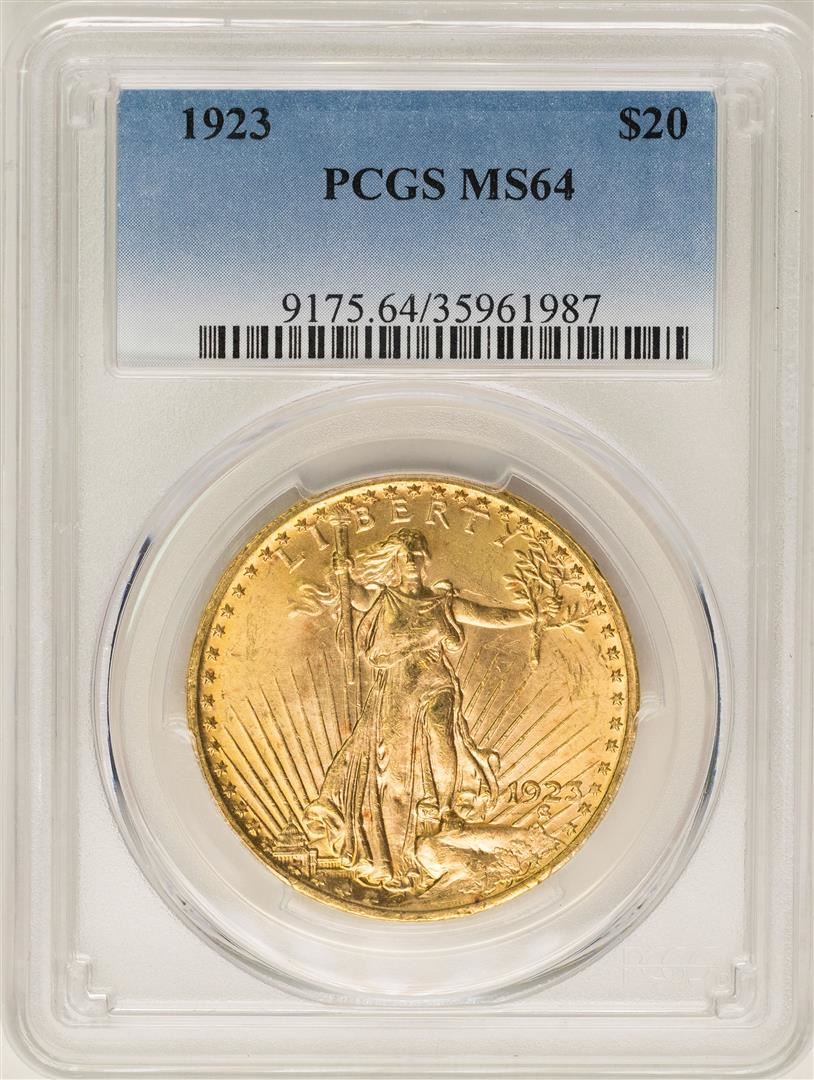 One 1923 $20 St. Gaudens Double Eagle Gold Coin PCGS MS64. PCGS Graded.
