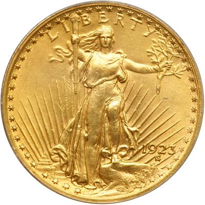 1923 $20 St. Gaudens PCGS graded Genuine. PCGS Graded, Our grade is sharpness of AU58 Cleaned (PCGS # 9175) .