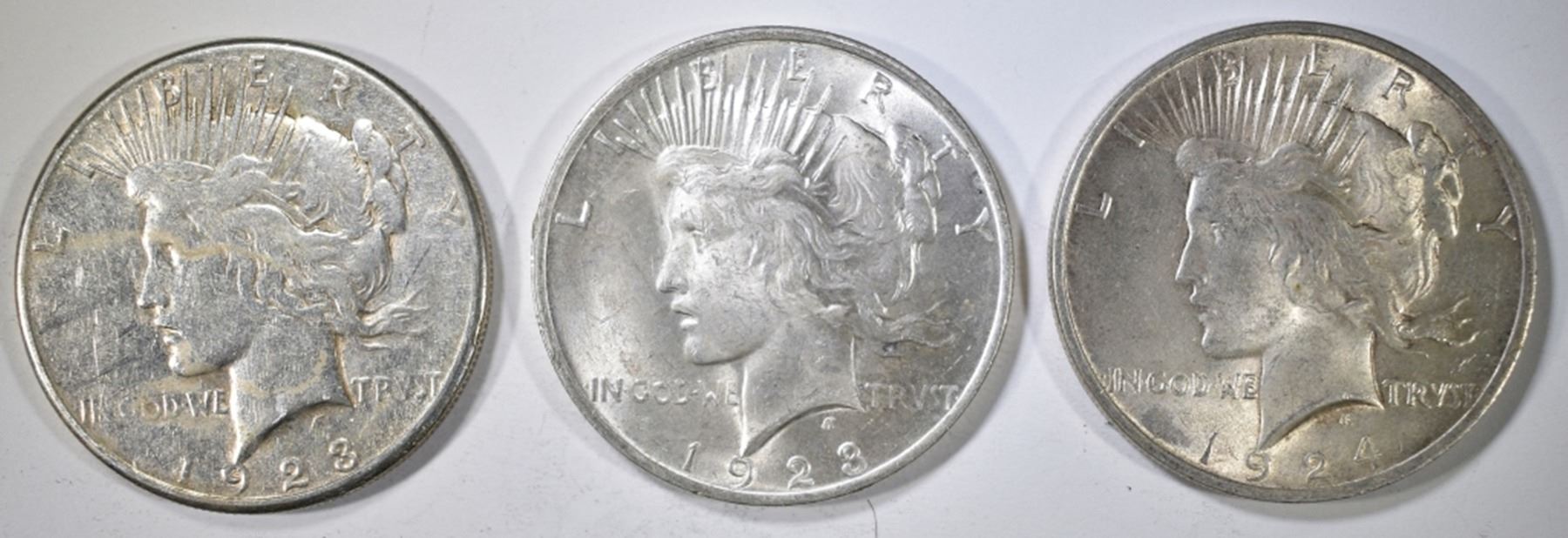 1923, 23-S & 24 DECENT CIRC PEACE DOLLARS