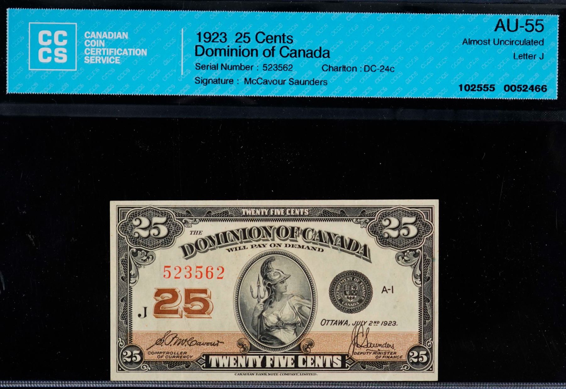 The cataloguer has taken every reasonable measure to ensure that all of the lots in this sale are as described and genuine. All raw coins and banknotes have been graded by the cataloger or the auction house which represent our best professional opinion. To grade coins and banknotes, we use Canadian grading standards, 42 years of experience and good conscience. However, grading is a subjective description in the opinion of the cataloger or the auction house. Among experts there are often differences of opinion on the grading and the eye appeal of a coin. The strike and the state of preservation are often debated. The Canadian Numismatic Company acts as an agent between consignors and buyers. The Canadian Numismatic Company does not guarantee that any coin or banknote cataloged will meet the standards, or the grade, of any third party grading companies. No warranty, whether impressed or implied. Items are as is, no warranty given. We cannot accept responsibility and waive all liability resulting in financial losses, and or incidentals accruing from the sale of any items, nor can we guarantee that items graded by third party services will grade the same if submitted to a different grading service or re-submitted to the same company. Statements by The Canadian Numismatic Company regarding the condition, the eye appeal, the strike and the population of items are for guidance only. All lots offered are sold "AS IS". Title to all lots remains with the auction house until paid for in full by the purchaser. But they are held at the risk of the purchaser once the time of the sale.