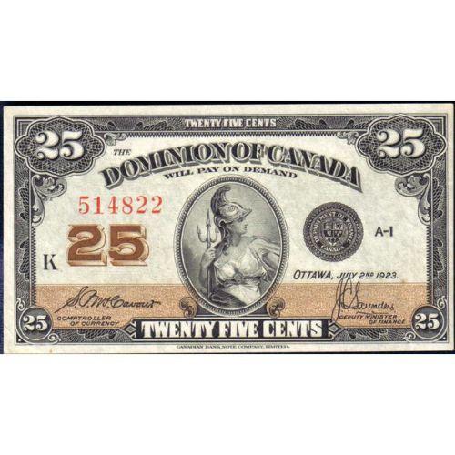 1923 Twenty-Five Cents, McCavour-Saunders, DC-24c, Serial Number K 514822, Uncirculated