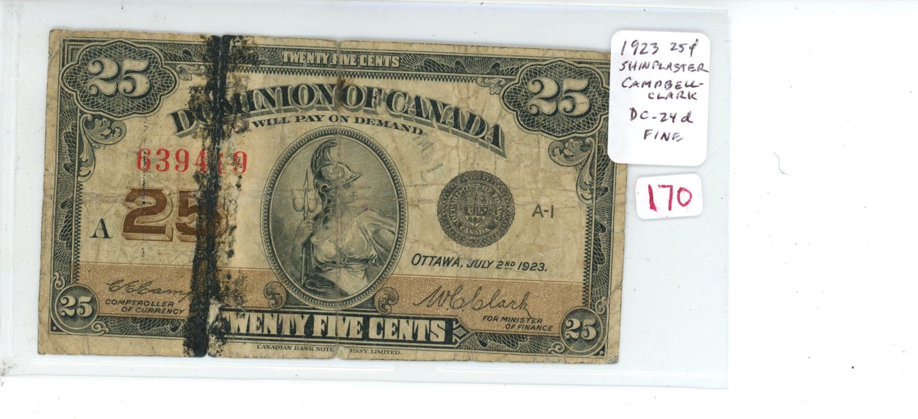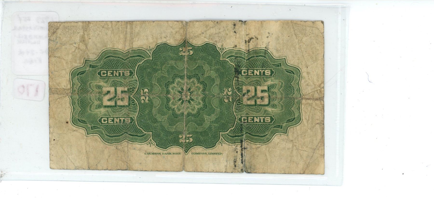 1923 25 Cents Shinplaster. Campbell-Clark signatures. DC-24d. The last shinplaster. F-12.