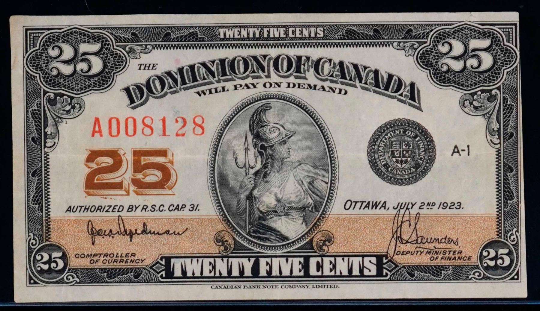 1923 25 Cents - Shinplaster DC-24a #A008128 "Auth - Hyndman" VF or better, Bright example.