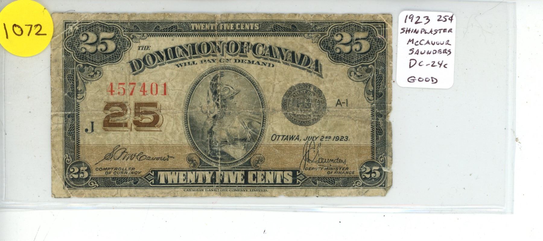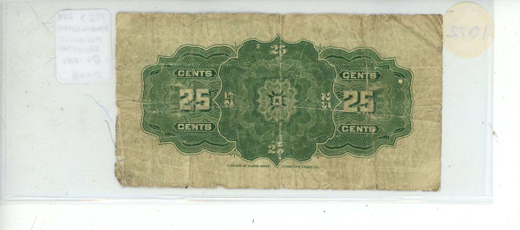1923 25 Cents Shinplaster. McCavour-Saunders signatures. Check Letter J. BC-24c. Good-4.