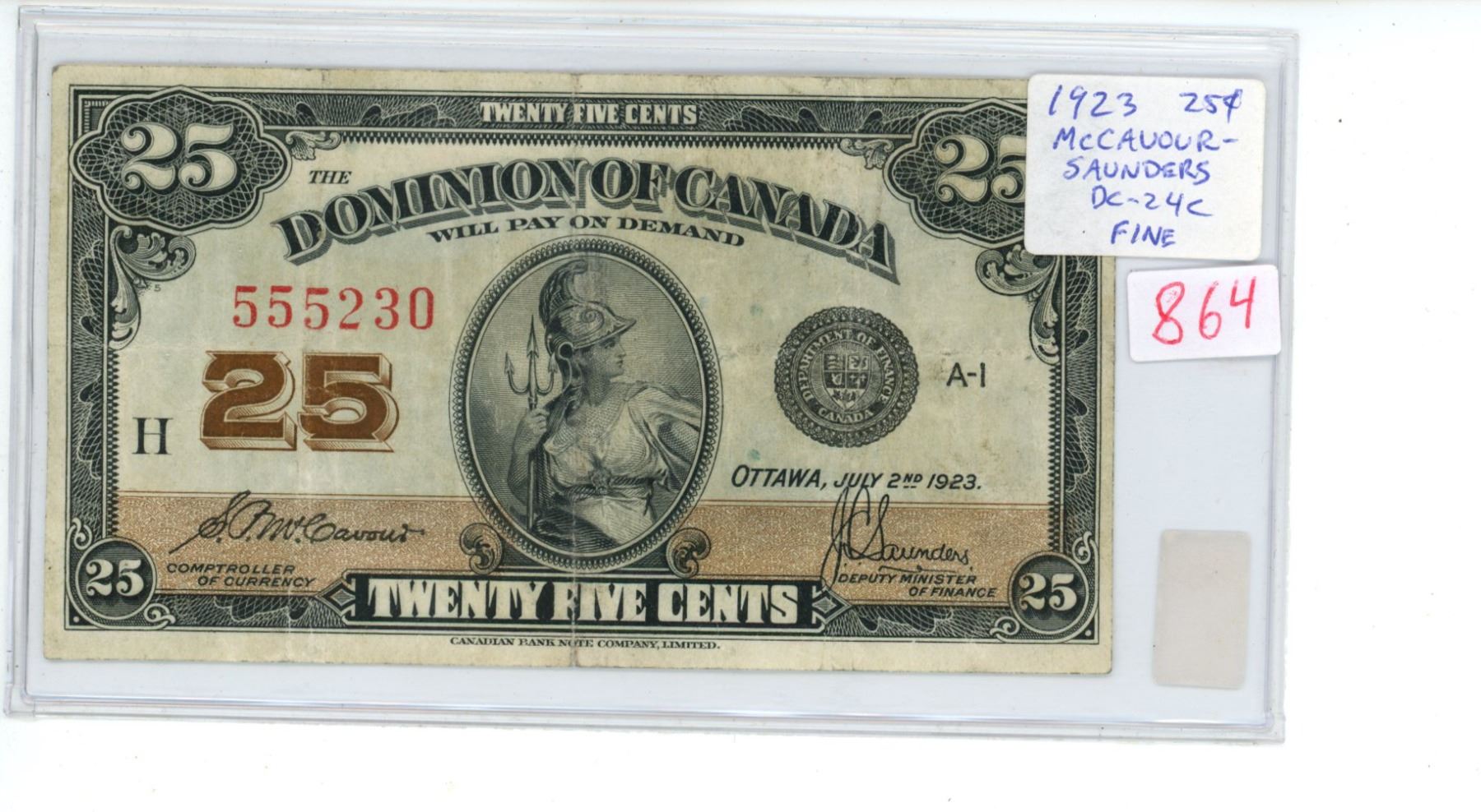 1923 25 Cents Shinplaster. McCavour-Saunders signatures. DC-24c. F-12.