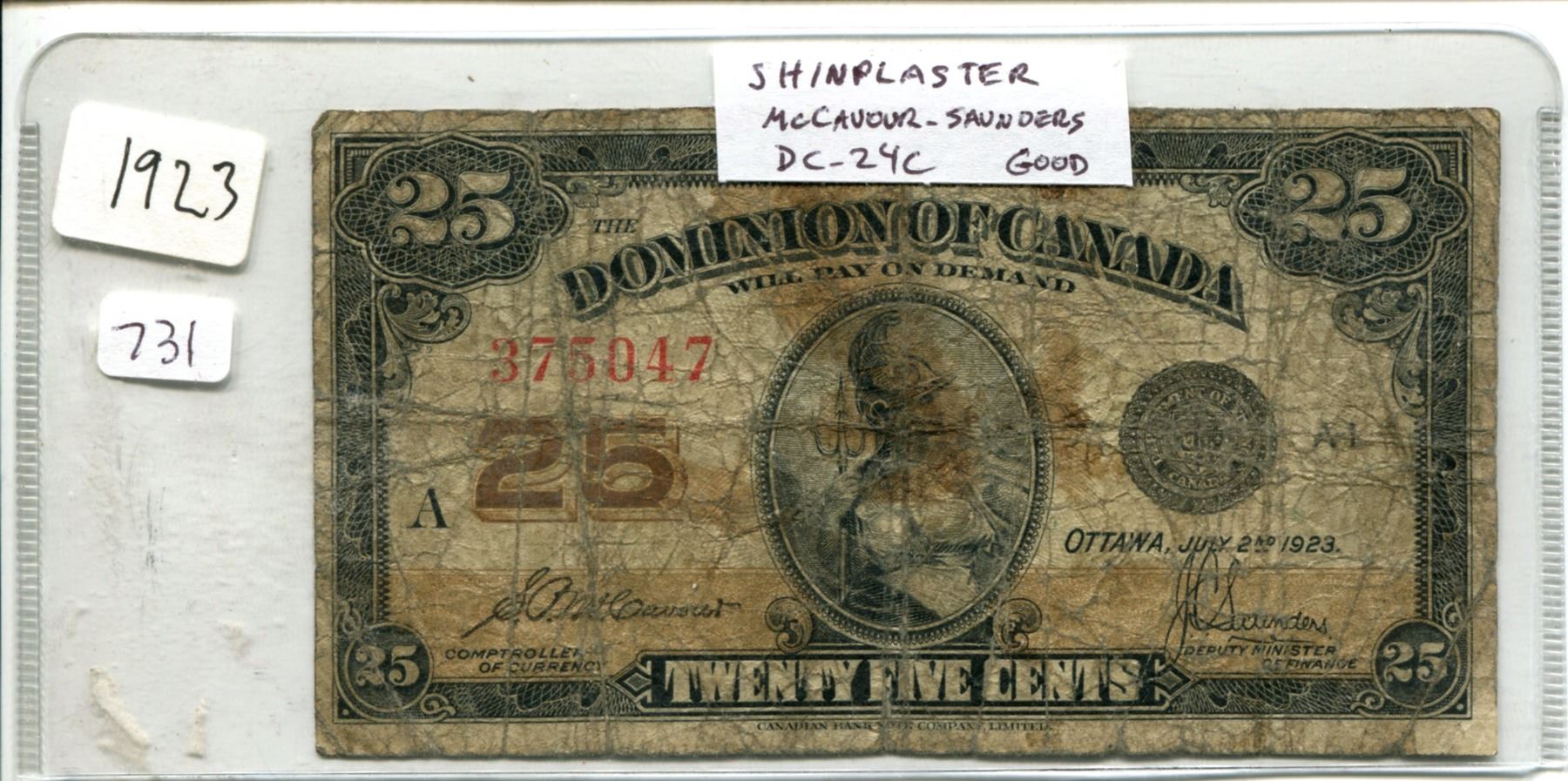 1923 25 Cents Shinplaster. McCavour-Saunders signatures. DC-24c. Good.