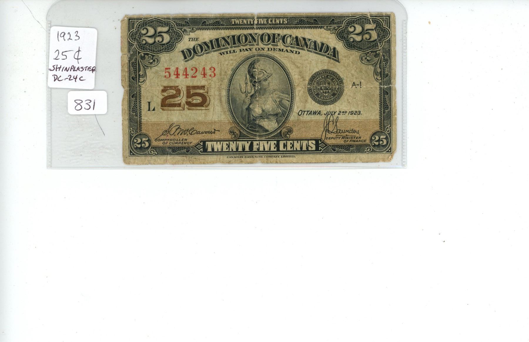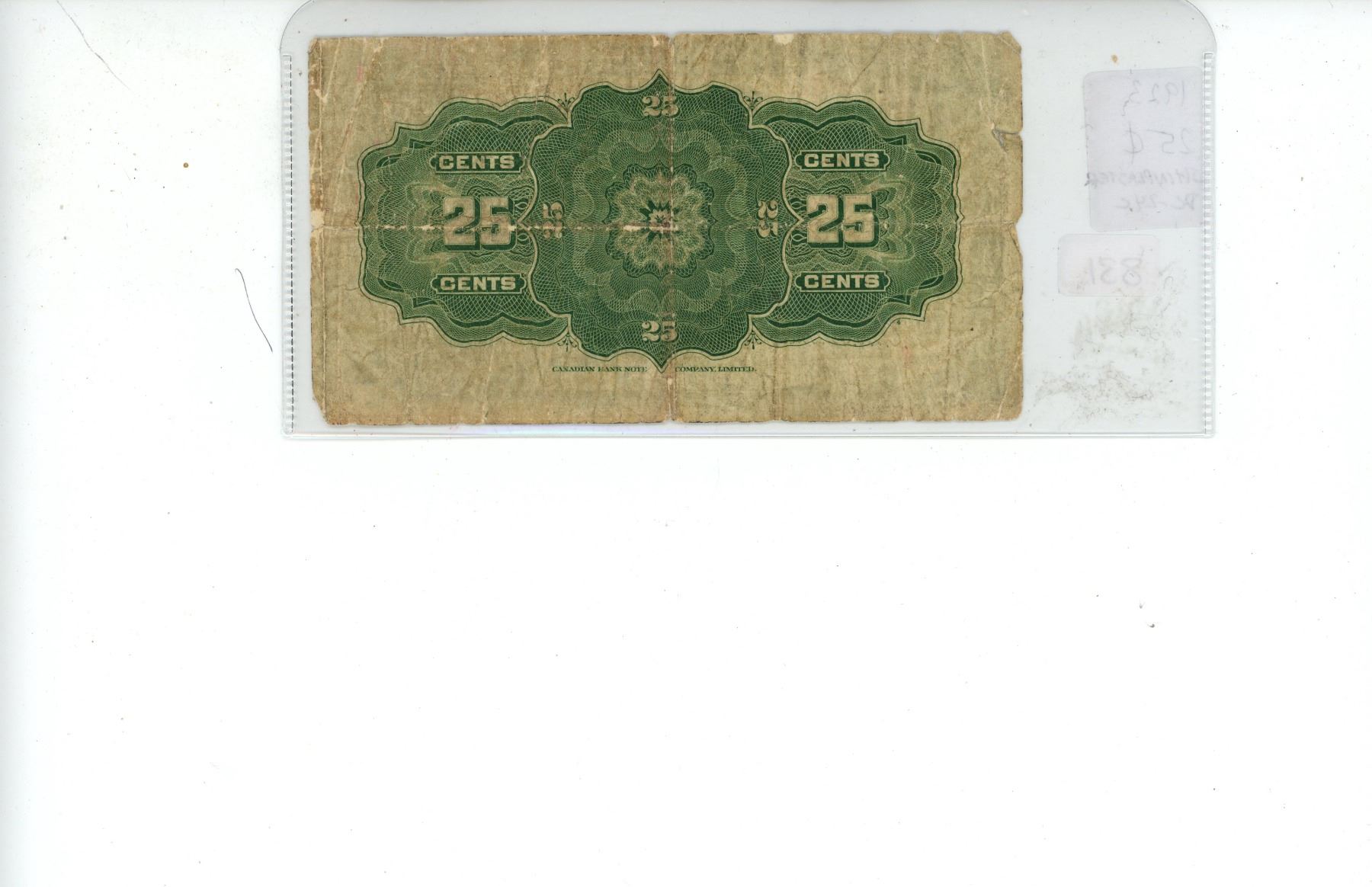 1923 25 Cents Shinplaster. McCavour-Saunders signatures. DC-24c. VG.