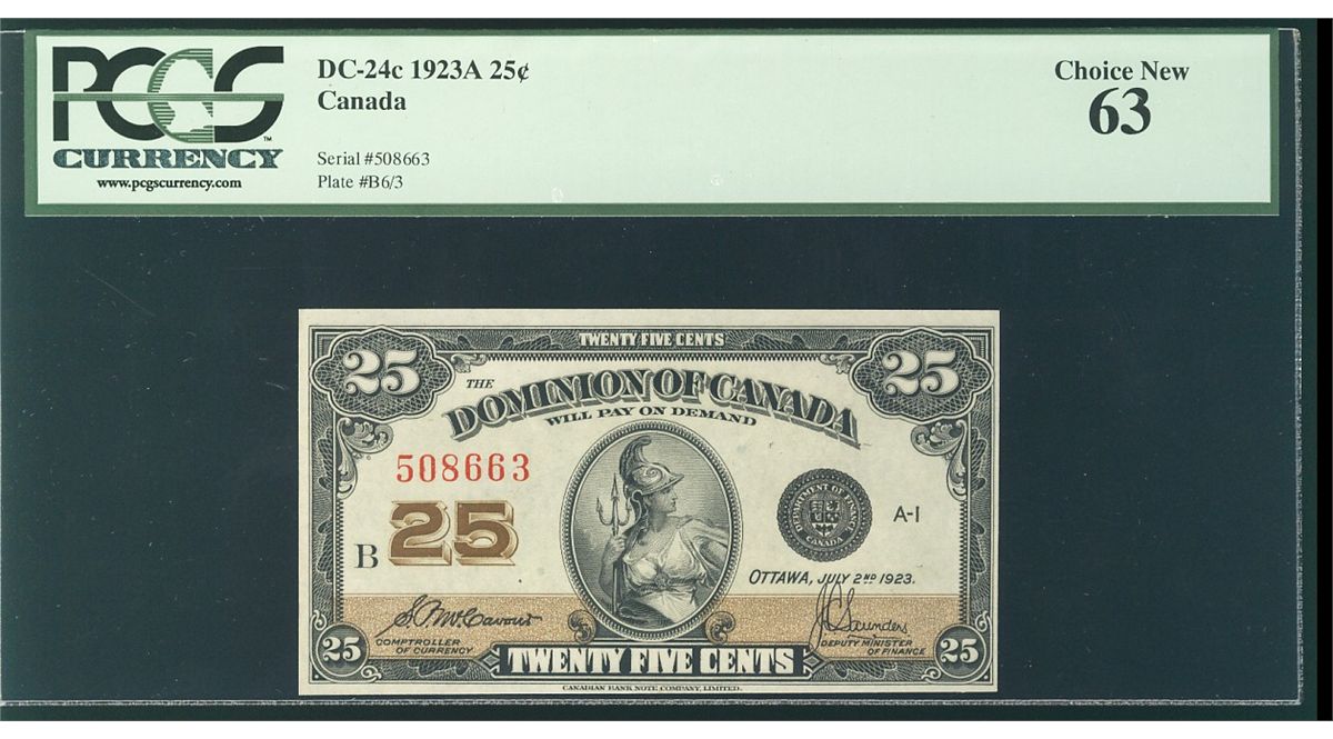 1923 25¢ DC-24c #508663 PCGS CH UNC63.