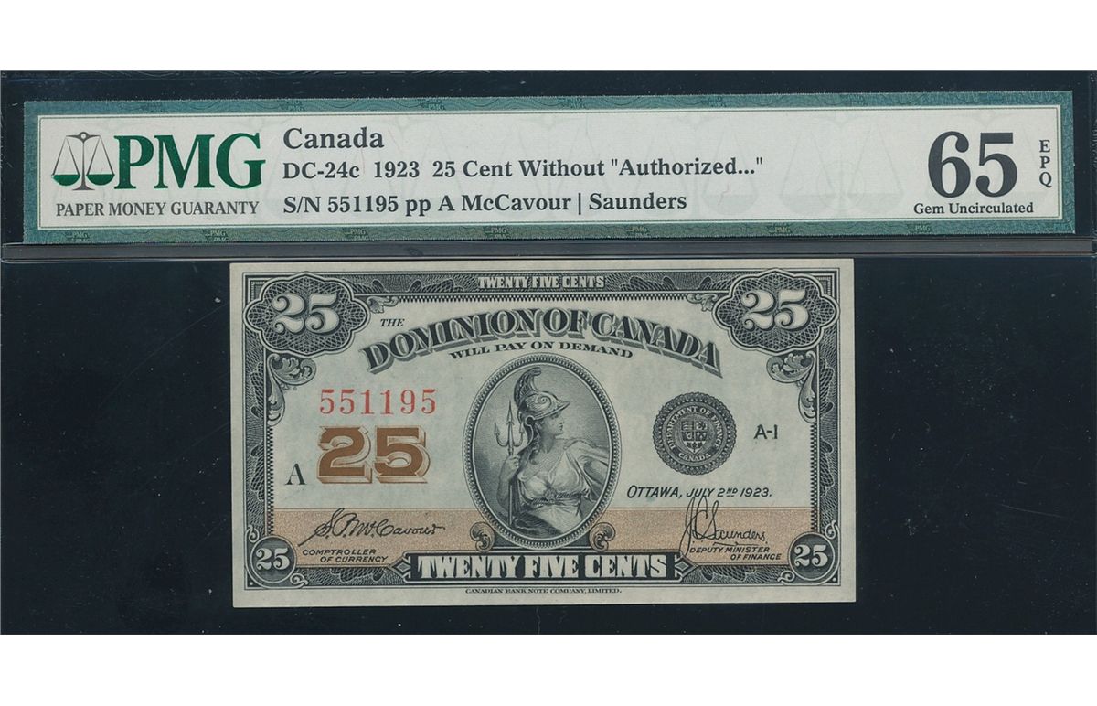 1923 25¢ DC-24c #551195, PMG Gem UNC65EPQ.