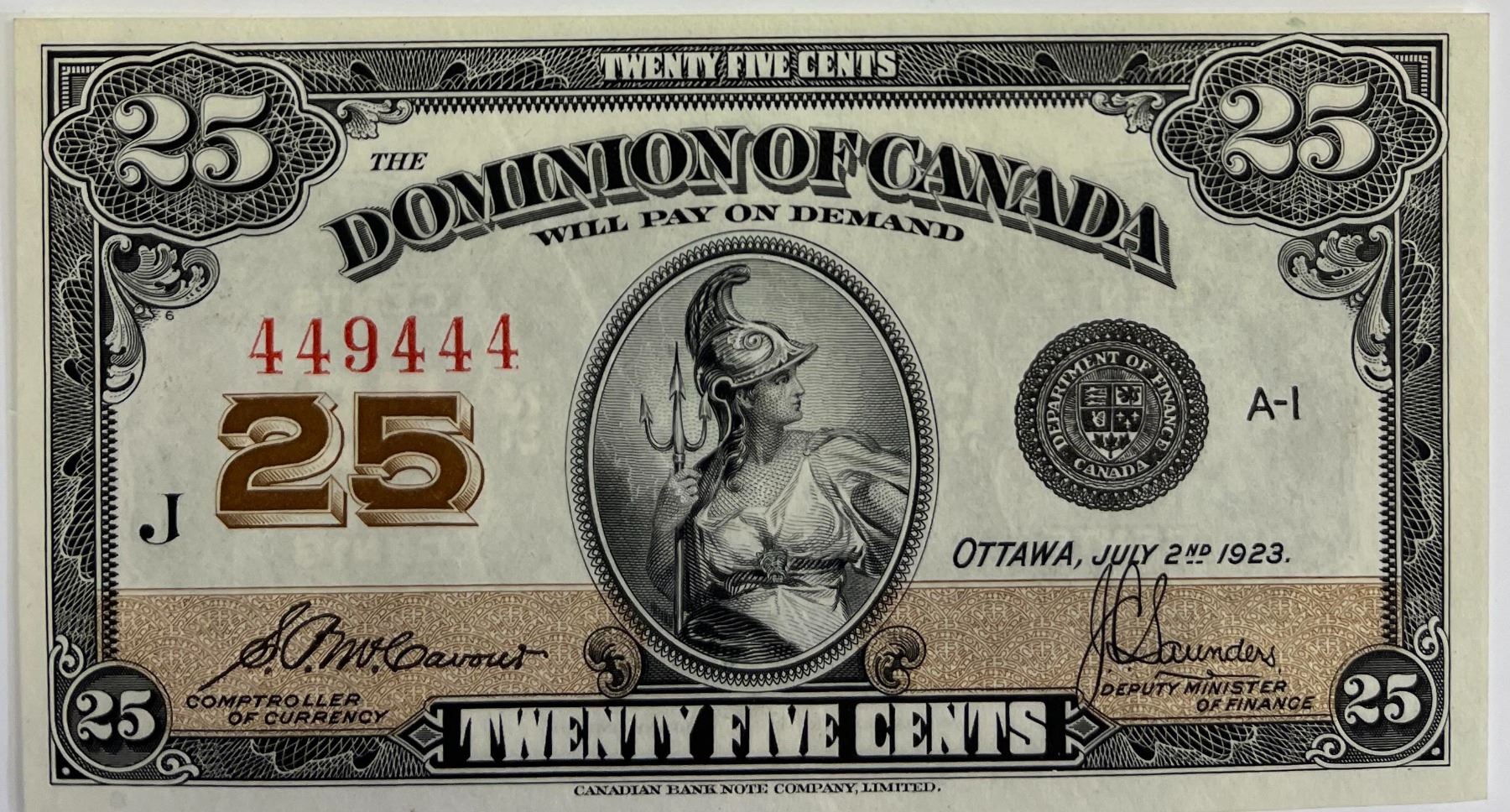 1923 25¢ DC-24c J/449444 Choice AU.