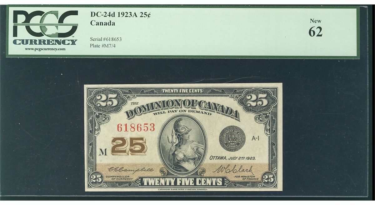 1923 25¢ DC-24d #618653 PCGS UNC 62.