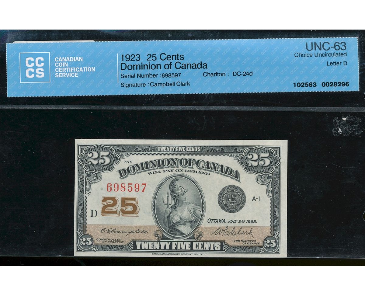 1923 25¢ DC-24d #698597, CCCS CH UNC63.