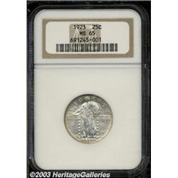 1923 25C MS65 NGC. An essentially brilliant Gem that has flashy luster and clean surfaces. Well struck except for the trio of leaves on Liberty's helmet. Important notice: Heritage usually auctions material at the rate of 200-250 lots per hour. On some occasions eBay Live bid software or the Internet may not be able to keep up with the pace of the auction. We recommend placing a realistic absentee bid now as insurance to avoid disappointment. Occasionally the auctioneer may eliminate or reject an eBay Live bid, and the auctioneer may also reopen a lot after the close of the eBay live bidding (usually because we missed an audience bid), and may reject your bid even if it shows you as the winning bidder. By bidding via eBay Live, you agree that Heritage may award the lot to another bidder at its sole discretion under the circumstances described above or any other reasonable circumstances. Also please note that all Heritage lots purchased through eBay Live carry a 20% Buyer's Premium. Please make sure you read the Terms and Conditions before you bid.