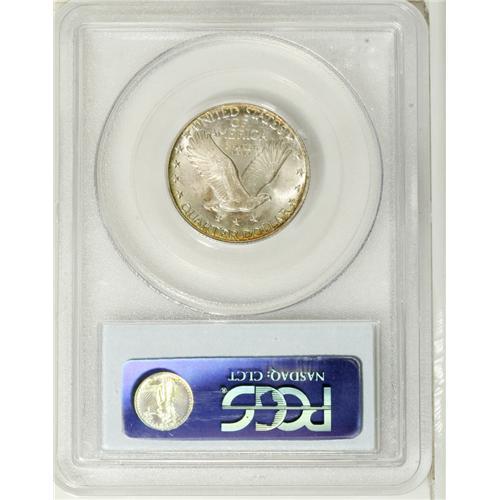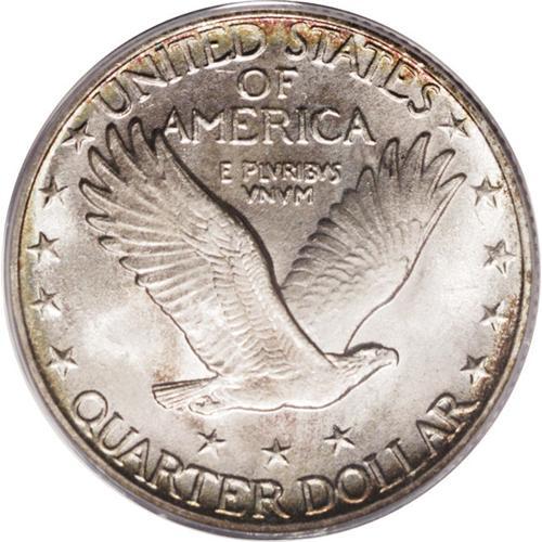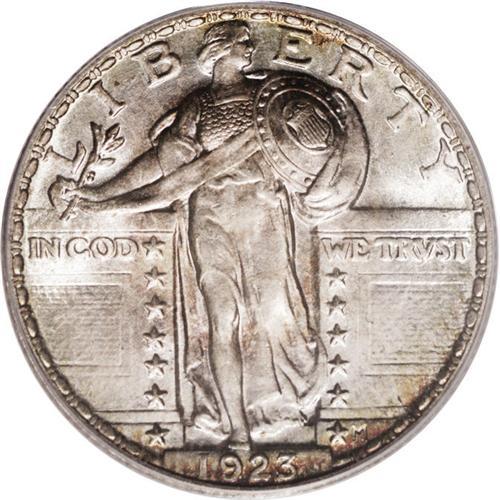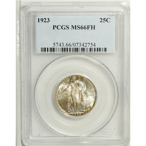 <B>1923 25C MS66 Full Head PCGS.</B></I> This generously struck coin combines both full head detail with a well produced strike elsewhere and over-the-top eye appeal. The brilliant, lustrous silver-rose centers are tinged with amber and deep indigo at the rims on each side. All of the shield rivets are full, and the shield lines are all present, if not well delineated. A delightful example, worthy of a fine collection. Population: 24 in 66 Full Head, 2 finer (10/06).<BR><BR><b>Shipping:</b> Coin/Currency (<a target="_blank" href="http://www.heritageauctions.com/common/shipping.php">view shipping information</a>)