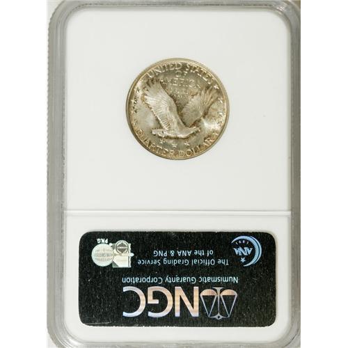 1923 25C MS66 NGC. Wisps of gold-tan and green patinat