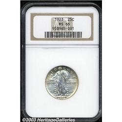 1923 25C MS66 NGC. Crisply struck devices and shimmering brilliant luster with a hint of gold toning over portions of each side highlight this Superb Gem Standard Liberty quarter. An extremely attractive example of this popular type. Important notice: Heritage usually auctions material at the rate of 200-250 lots per hour. On some occasions eBay Live bid software or the Internet may not be able to keep up with the pace of the auction. We recommend placing a realistic absentee bid now as insurance to avoid disappointment. Occasionally the auctioneer may eliminate or reject an eBay Live bid, and the auctioneer may also reopen a lot after the close of the eBay live bidding (usually because we missed an audience bid), and may reject your bid even if it shows you as the winning bidder. By bidding via eBay Live, you agree that Heritage may award the lot to another bidder at its sole discretion under the circumstances described above or any other reasonable circumstances. Also please note that all Heritage lots purchased through eBay Live carry a 20% Buyer's Premium. Please make sure you read the Terms and Conditions before you bid.