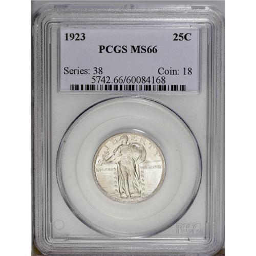 1923 25C MS66 PCGS.From The Indiana Undertaker Collect 1923[25C] MS66 PCGS.
