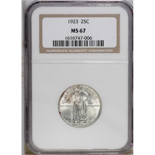 1923 25C MS67 NGC. The nearly immaculate fields are la