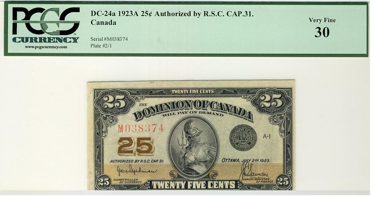 1923 25c DC-24a #M038374 PCGS VF30