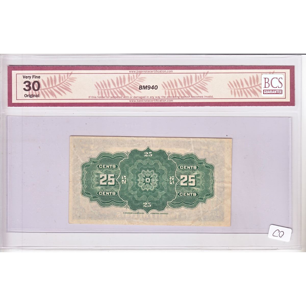 1923 25c Note from the Dominion of Canada; cat code DC-24c, McCavour-Saunders signatures, BCS Certif