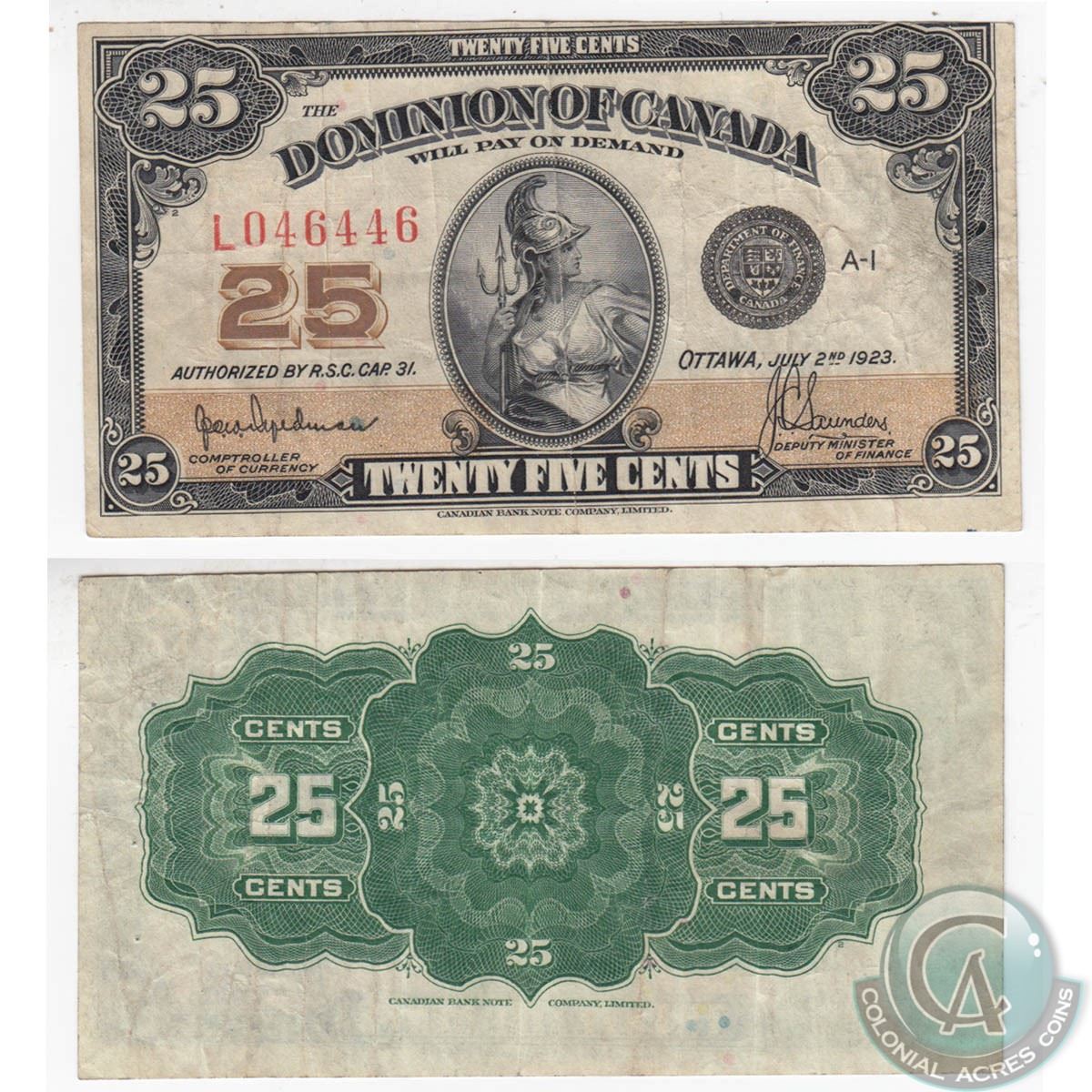 1923 25c Note with Hyndman-Saunders Signatures in VF. The note has some pinholes to the right side.