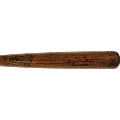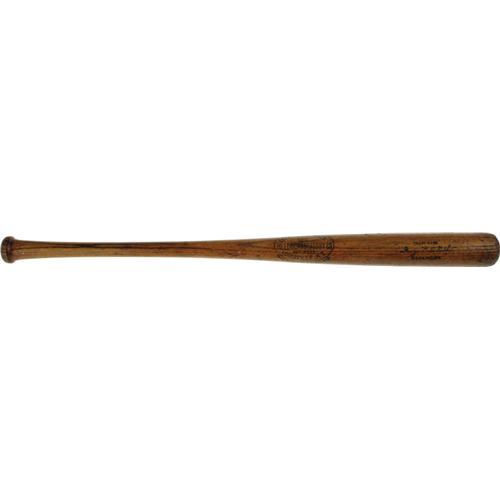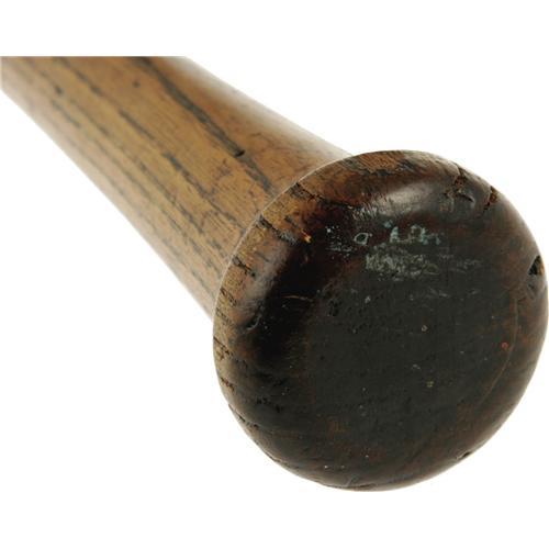 <B>1923-26 Babe Ruth Game Used Home Run Bat.</B></I> In the history of competitive sport, there has been no single figure that has so radically altered a game's status quo as did the great Bambino, burying baseball's Dead Ball era with a barrage of long ball blasts. The old guard, used to a game of singles and sacrifice bunts, moving runners along, never knew what hit them. Al Stumpf's biography of Ty Cobb recounts an apocryphal conversation in which the fiery legend laments "that fat ass named Babe Ruth came into the league and nearly destroyed the game of baseball." But the fans clearly sided with the Babe, and the Yankee slugger's feats of strength packed the stands, arguably saving the sport from the 1919 Black Sox scandal that threatened to sink our national pastime. And this love affair with the long ball survives to this day, continuing to play the leading role in the game's most memorable occasions, from the 1961 and 1998 chases to Thomson's and Mazeroski's game-winners to Aaron's and Bonds' hunts for the Babe himself.<BR><BR> It is for these reasons that the piece we present here, an actual Babe Ruth home run bat, ranks as one of the most important and desirable pieces in the collecting hobby. It represents that seismic shift in the way the greatest game on earth is played, one of the most crucial points in baseball's evolution. Holding this forty-two ounce behemoth of a Hillerich & Bradsby in one's hands is a treat that every true lover of the game should experience at least once.<BR><BR> In every regard, this thirty-five and three-quarter inch signature model bat registers elite status, meriting nothing less than a perfect score of A10 from noted authenticator Dave Bushing. He notes the "Perfect example of the hitting surface for label down left handed batters unique to Babe Ruth," with use characterized as "Heavy," and evident to the touch. Pock marksinflicted as Ruth knocked the dirt off his spikes in the batter's box dot the surface as well. But the most noteworthy scar to the deeply toned lumber is the notch carved at the one o'clock position of the center label oval, which recalls the days when gunslingers would record kills on the handles of their pistols, but here represents a ball that the Babe sent over the wall. Ruth's practice of notching bats in this fashion is well-documented, and Bushing notes that this "...home run notch in the outer right oval [is] similar in length, depth and location to other known HR notched Ruth bats."<BR><BR> Top bat expert John Taube has been able to narrow the era of this remarkable artifact to the earliest years of the House that Ruth Built, noting that the labeling period is 1921 to 1931, but the thickness of the handle and the size of the knob denote a thinner range. Once again, the letter of authenticity heaps praise upon the piece, stating, "The bat is 'Ruthian' in every respect. This is one of the nicest Ruth bats that I have had the pleasure to authenticate."<BR><BR> We at Heritage Auction Galleries are humbled by the opportunity to present such a national treasure to the collecting world. As we have said many times before, Babe Ruth is so much more than just a famous athlete-he is a symbol of America itself, of rising up from adversity, of the boldness and vitality of a young nation. One can't help but feel inspired in the presence of this tool used by a poor kid from a Baltimore orphanage to become the world's most famous man. <I>LOA from Dave Bushing. LOA from Vince Malta. LOA from John Taube.</B></I>