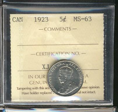 1923 5¢ ICCS MS63.