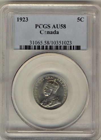 1923 5¢ PCGS AU58.