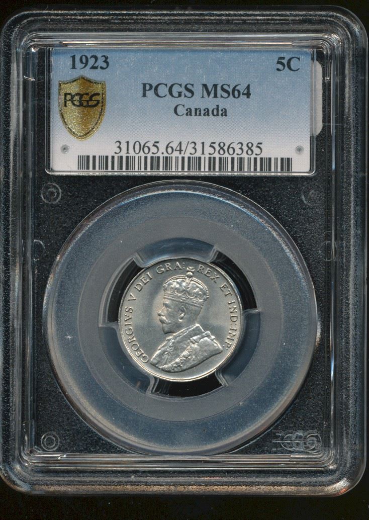 1923 5¢ PCGS MS64. Lots of lustre. Nice.
