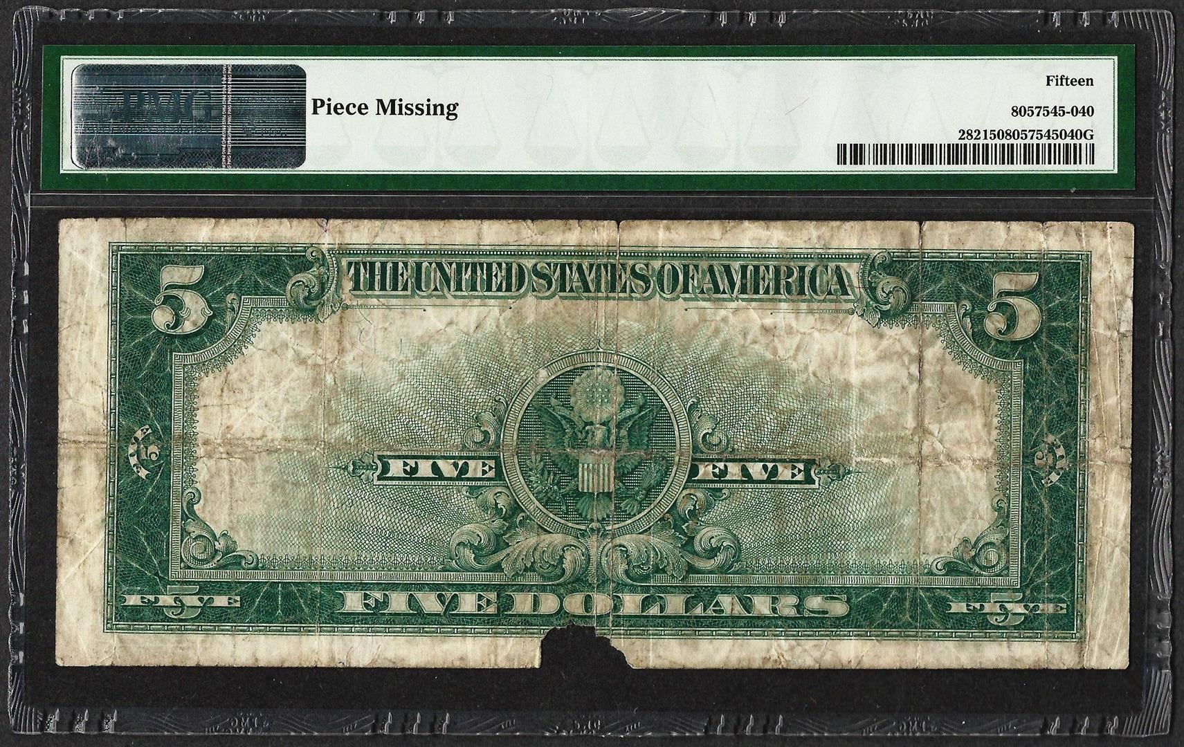One 1923 $5 Porthole Silver Certificate Note Fr.282 PMG Choice Fine 15. PMG Certified.