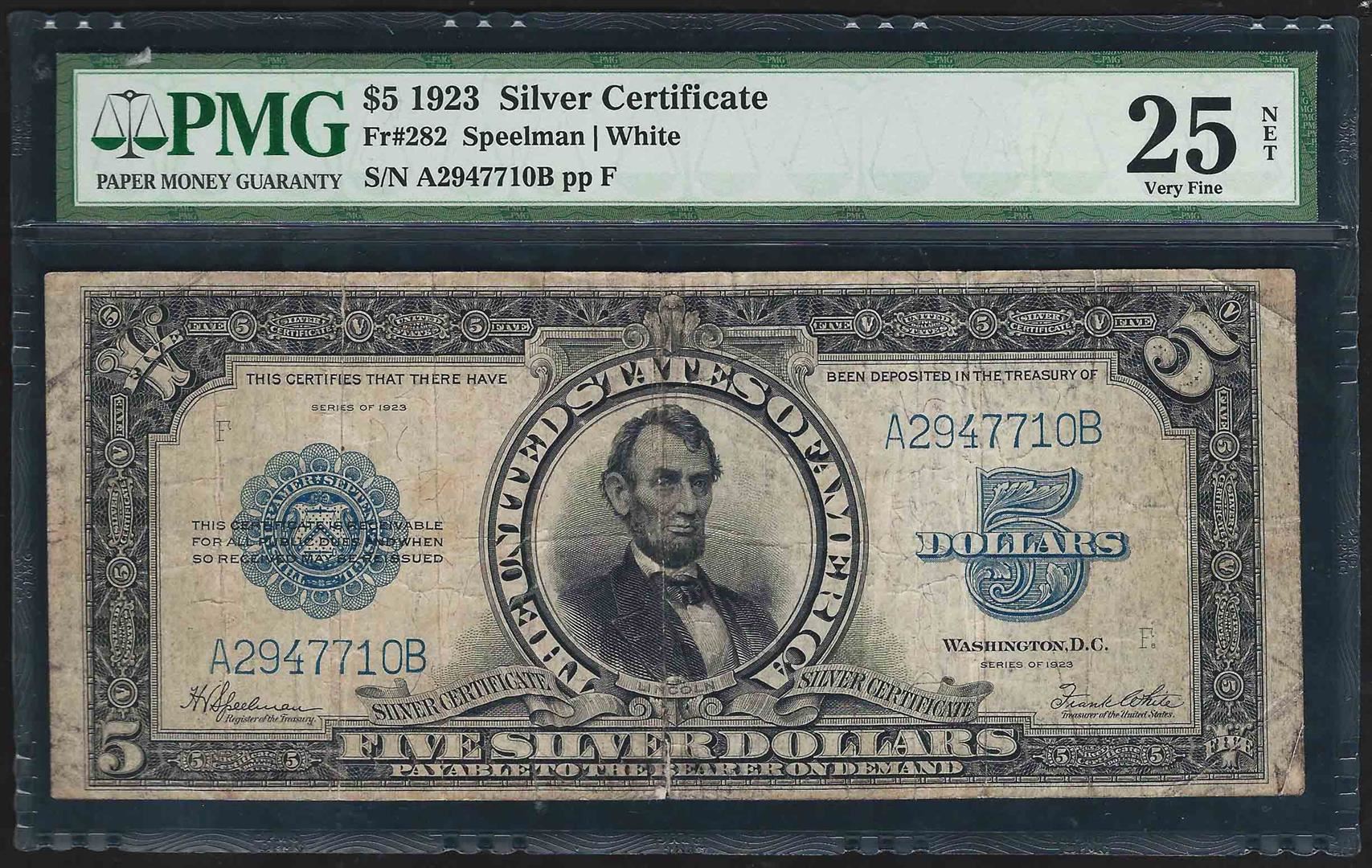 1923 $5 Porthole Silver Certificate Note Fr.282 PMG Very Fine 25 Net