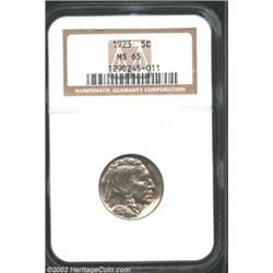 <TABLE cellSpacing=0 cellPadding=0 width="100%" bgColor=#000000 border=0><TBODY><TR><TD width="100%"><TABLE cellSpacing=1 cellPadding=3 width="100%" border=0><TBODY><TR><TD width="100%" bgColor=#79735c><FONT face=arial color=#ffffff size=3><B>Description</B> </FONT></TD></TR><TR><TD width="100%" bgColor=#ffffff><FONT face=arial size=2><B>1923 5C MS65 NGC.</B></I> Well struck for the type, and just slightly weak near the obverse center, the olive-golden surfaces are satiny and lustrous, without any problems or distractions. Population: 127 in 65, 38 finer (7/03). </FONT></TD></TR></TBODY></TABLE></TD></TR></TBODY></TABLE><BR><A name=PricesRealized></A><TABLE cellSpacing=0 cellPadding=0 width="100%" bgColor=#000000 border=0><TBODY><TR><TD width="100%"><TABLE cellSpacing=1 cellPadding=3 width="100%" border=0><TBODY><TR><TD width="100%" bgColor=#79735c><A name=PR><FONT face=arial color=#ffffff size=3><B>Previous Prices from Heritage Auctions</B> </FONT></A></TD></TR><TR><TD bgColor=#f6f6ed><TABLE cellSpacing=0 cellPadding=0 width="100%" border=1><TBODY><TR><TD align=middle width="33%"><B>Date</B></TD><TD align=middle width="33%"><B>Service</B></TD><TD align=middle width="33%"><B>Price</B></TD></TR><TR bgColor=whitesmoke><TD width="33%"><B>03/03/2003</B></TD><TD width="33%">NGC</TD><TD width="33%">$425.50</TD></TR><TR bgColor=whitesmoke><TD width="33%"><B>09/28/2002</B></TD><TD width="33%">PCGS</TD><TD width="33%">$632.50</TD></TR><TR bgColor=whitesmoke><TD width="33%"><B>11/23/2002</B></TD><TD width="33%">NGC</TD><TD width="33%">$402.50</TD></TR><TR bgColor=whitesmoke><TD width="33%"><B>12/03/2002</B></TD><TD width="33%">PCGS</TD><TD width="33%">$450.80</TD></TR><TR bgColor=whitesmoke><TD width="33%"><B>11/17/2001</B></TD><TD width="33%">PCGS</TD><TD width="33%">$437.00</TD></TR><TR bgColor=whitesmoke><TD width="33%"><B>02/23/2001</B></TD><TD width="33%">PCGS</TD><TD width="33%">$460.00</TD></TR><TR bgColor=whitesmoke><TD width="33%"><B>05/06/1994</B></TD><TD width="33%">PCGS</TD><TD width="33%">$467.50</TD></TR><TR bgColor=whitesmoke><TD width="33%"><B>05/05/2000</B></TD><TD width="33%">PCGS</TD><TD width="33%">$1,495.00</TD></TR><TR bgColor=whitesmoke><TD width="33%"><B>03/01/2003</B></TD><TD width="33%">PCGS</TD><TD width="33%">$977.50</TD></TR><TR bgColor=whitesmoke><TD width="33%"><B>03/01/2003</B></TD><TD width="33%">PCGS</TD><TD width="33%">$805.00</TD></TR><TR bgColor=whitesmoke><TD width="33%"><B>01/05/2001</B></TD><TD width="33%">NGC</TD><TD width="33%">$345.00</TD></TR><TR bgColor=whitesmoke><TD width="33%"><B>09/23/1998</B></TD><TD width="33%">NGC</TD><TD width="33%">$352.00</TD></TR><TR bgColor=whitesmoke><TD width="33%"><B>03/03/2003</B></TD><TD width="33%">NGC</TD><TD width="33%">$379.50</TD></TR></TBODY></TABLE></TD></TR><TR><TD bgColor=#ffffff><FONT face=arial size=1 ?>PLEASE NOTE: All prices realized reflect the final hammer price PLUS the buyer's premium in auctions that charge a buyer's premium. Each item has a notation at the top of the listing indicating whether that lot included a buyer's premium. Example: A item that sells with a final hammer price of $100 and a 20% buyer's premium will display with a price realized of $120. All information listed is intended to be as accurate as possible, but errors are possible. Please use this guide carefully and inform us of any inaccuracies. </FONT></TD></TR></TBODY></TABLE></TD></TR></TBODY></TABLE><BR><TABLE cellSpacing=0 cellPadding=0 width="100%" bgColor=#000000 border=0><TBODY><TR><TD width="100%"><TABLE cellSpacing=1 cellPadding=3 width="100%" border=0><TBODY><TR><TD width="100%" bgColor=#79735c colSpan=6><FONT face=arial color=#ffffff size=3><B>Price Guide*</B> </FONT></TD></TR><TR bgColor=#f6f6ed><TD align=middle><B>Grade</B> </TD><TD align=middle><B>Coin World<BR>(Trends)</B> </TD><TD align=middle><B>Numismedia<BR>Retail</B> </TD><TD align=middle><B>Numismedia<BR>Wholesale</B> </TD><TD align=middle><B>Coin<BR>Universe</B> </TD><TD align=middle><B>Heritage<BR>Value Index</B> </TD></TR><TR bgColor=#ffffff><TD align=middle>64</TD><TD align=right>$175.00</TD><TD align=right>$160.00</TD><TD align=right>$128.00</TD><TD align=right>$175.00</TD><TD align=right>$122.75</TD></TR><TR style="FONT-WEIGHT: bold" bgColor=#cccfdd><TD align=middle>65</TD><TD align=right>$585.00</TD><TD align=right>$575.00</TD><TD align=right>$460.00</TD><TD align=right>$635.00</TD><TD align=right>$433.50</TD></TR><TR bgColor=#ffffff><TD align=middle>66</TD><TD align=right>$1,400.00</TD><TD align=right>---</TD><TD align=right>$940.00</TD><TD align=right>$1,600.00</TD><TD align=right>$950.00</TD></TR><TR bgColor=#ffffff><TD colSpan=6><FONT size=1>*All information listed is intended to be as accurate as possible, but errors are possible. No item may be returned or refused based on this information which is provided as a service to our customers. You should contact each pricing source directly to determine the accuracy of this information. </FONT></TD></TR></TBODY></TABLE></TD></TR></TBODY></TABLE><BR><TABLE cellSpacing=0 cellPadding=0 width="100%" bgColor=#000000 border=0><TBODY><TR><TD width="100%"><TABLE cellSpacing=1 cellPadding=3 width="100%" border=0><TBODY><TR><TD width="100%" bgColor=#79735c><FONT face=arial color=#ffffff size=3><B>Population Guide</B> </FONT></TD></TR><TR bgColor=#ffffff><TD align=middle><!-- Begin Output of Population Grid--><TABLE cellSpacing=0 cellPadding=0 width="100%" border=0><TBODY><TR><TD vAlign=center><TABLE cellSpacing=0 width="100%" border=1 cellsadding="3"><TBODY><TR><TD vAlign=center><TABLE cellSpacing=0 cellPadding=3 width="100%" border=1><TBODY><TR><TD vAlign=center align=middle bgColor=#f0f1e8 colSpan=2 <CENTER><FONT face=Arial size=2><B>PCGS Pop </B></FONT><CENTER></CENTER></TD><TD vAlign=center align=middle bgColor=#f0f1e8 colSpan=2><CENTER><FONT face=Arial size=2><B>NGC Pop</B></CENTER></FONT></TD></TR><TR><TD vAlign=center><FONT face=Arial size=2>(65)</FONT> </TD><TD vAlign=center align=right><FONT face=Arial siz