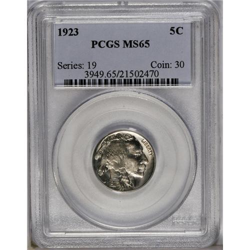 <B>1923<5C> MS65 PCGS.</B></I> This Gem's lustrous surfaces are almost completely free of marks. Slight striking weakness on the Indian's hairline and the bison's shoulder, somewhat common for the issue, keep this piece from an even higher grade.<BR><I>From The Chicago-Ark Collection.</B></I>