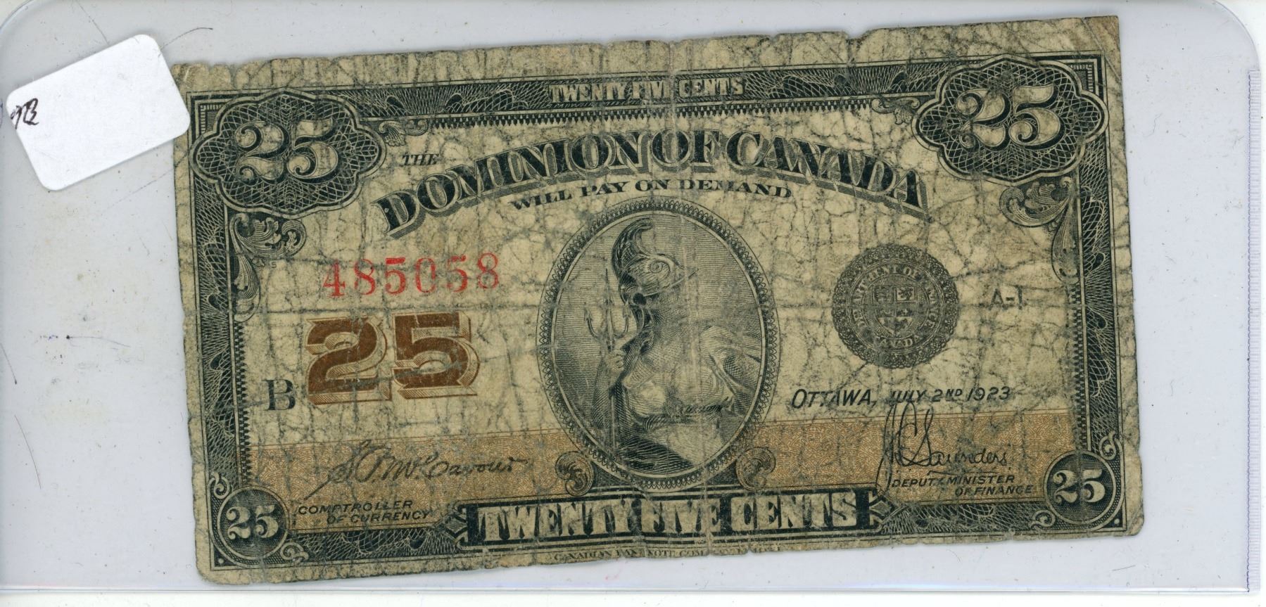 1923 B Twenty-Five Cents Dominion of Canada (Shinplaster)