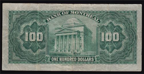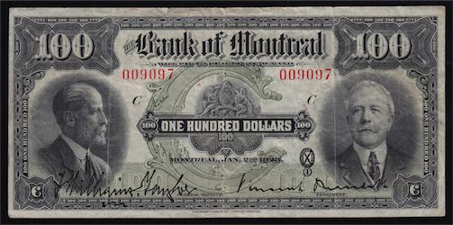 1923 Bank of Montreal One Hundred Dollars CH 505-56-10. VF. S/N: 009097/C.