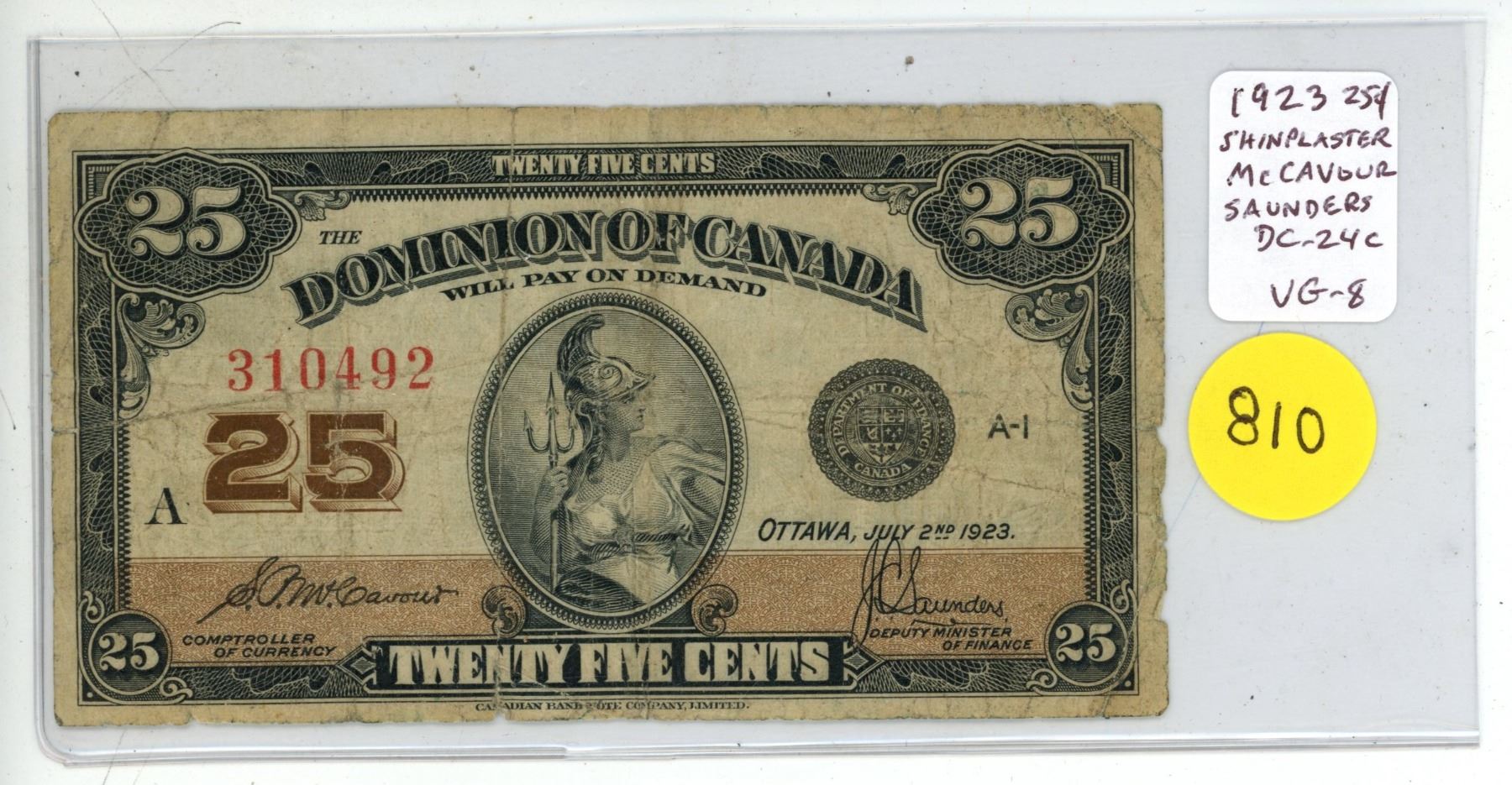 1923 Canadian 25 Cents Shinplaster. McCavour-Saunders signatures. DC-24c. VG-8.