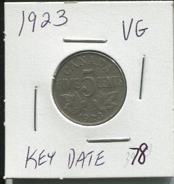 1923,Canadian 5 cent coin (KEY DATE),King George V