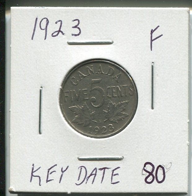 1923,Canadian 5 cent coin (KEY DATE),King George V