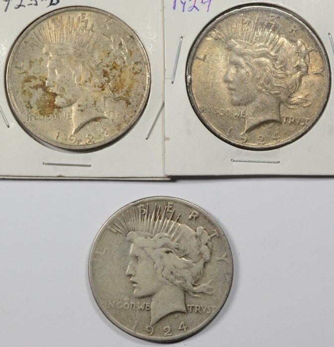 1923-D, 1924, & 1924-S PEACE DOLLARS
