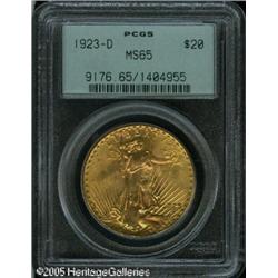 1923-D $20 MS65 PCGS. Lovingly cared for, this Gem
