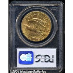 <B>1923-D<$20> MS65 PCGS.</B></I> Deep reddish and lilac patina enhances the eye appeal of this lustrous twenty. The only noticeable defect is a shallow abrasion in the upper right obverse field.<BR><I>From The Garden State Collection.</B></I> <BR><BR><B>Important notice:</B> Heritage usually auctions material at the rate of 200-250 lots per hour. On some occasions eBay Live bid software or the Internet may not be able to keep up with the pace of the auction. We recommend placing a realistic absentee bid now as insurance to avoid disappointment. Occasionally the auctioneer may eliminate or reject an eBay Live bid, and the auctioneer may also reopen a lot after the close of the eBay live bidding (usually because we missed an audience bid), and may reject your bid even if it shows you as the winning bidder. By bidding via eBay Live, you agree that Heritage may award the lot to another bidder at its sole discretion under the circumstances described above or any other reasonable circumstances. Since eBay bids are not shown to us until we open the lot on the floor, we treat those bids just like floor bids. In most cases the floor responds before the eBay bid is presented to us, due to Internet lag time, so for consistency we have made it a policy that floor bids are always considered first over tie eBay live bids. Also please note that all Heritage lots purchased through eBay Live carry a 20% Buyer's Premium. Please make sure you read the Terms and Conditions before you bid.