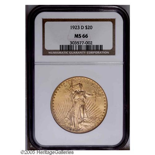 1923-D $20 MS66 NGC. The 1923-D, when offered in high 1923-D[$20] MS66 NGC.