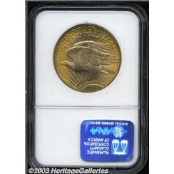 1923-D $20 MS66 NGC. A simply glorious, radiant Gem that exemplifies the obvious care taken in the production of this heavily minted D-mint Saint. The strike is needle sharp and scintillating luster bursts forth from rich orange-gold, nearly mark-free surfaces. Important notice: Heritage usually auctions material at the rate of 200-250 lots per hour. On some occasions eBay Live bid software or the Internet may not be able to keep up with the pace of the auction. We recommend placing a realistic absentee bid now as insurance to avoid disappointment. Occasionally the auctioneer may eliminate or reject an eBay Live bid, and the auctioneer may also reopen a lot after the close of the eBay live bidding (usually because we missed an audience bid), and may reject your bid even if it shows you as the winning bidder. By bidding via eBay Live, you agree that Heritage may award the lot to another bidder at its sole discretion under the circumstances described above or any other reasonable circumstances. Also please note that all Heritage lots purchased through eBay Live carry a 20% Buyer's Premium. Please make sure you read the Terms and Conditions before you bid.