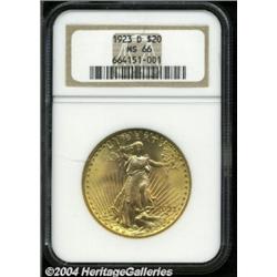 <table><tbody><tr><td><table> <TR><TD width="100%"><TABLE cellSpacing=1 cellPadding=3 width="100%" border=0><TBODY><TR><TD width="100%" bgColor=#79735c><FONT face=arial color=#ffffff size=3><B>Description</B> </FONT></TD></TR><TR><TD width="100%" bgColor=#ffffff><FONT face=arial size=2><B>1923-D $20 MS66 NGC.</B></I> Amazingly fresh, full mint bloom endows the well struck surfaces of this bright premium Gem, and the splendid eye appeal of the piece is further enhanced by beautiful pastel apricot and light-green colors. The 1923-D is the most affordable D-mint issue of the 1920s, in higher grades of Mint State. </FONT></TD></TR></TBODY></TABLE></TD></TR></TBODY></TABLE><BR><A name=PricesRealized></A><TABLE cellSpacing=0 cellPadding=0 width="100%" bgColor=#000000 border=0><TBODY><TR><TD width="100%"><TABLE cellSpacing=1 cellPadding=3 width="100%" border=0><TBODY><TR><TD width="100%" bgColor=#79735c><A name=PR><FONT face=arial color=#ffffff size=3><B>Previous Prices from Heritage Auctions</B> </FONT></A></TD></TR><TR><TD bgColor=#f6f6ed><TABLE cellSpacing=0 cellPadding=0 width="100%" border=1><TBODY><TR><TD align=middle width="33%"><B>Date</B></TD><TD align=middle width="33%"><B>Service</B></TD><TD align=middle width="33%"><B>Price</B></TD></TR><TR bgColor=whitesmoke><TD width="33%"><B>07/01/2003</B></TD><TD width="33%">PCGS</TD><TD width="33%">$2,300.00</TD></TR><TR bgColor=whitesmoke><TD width="33%"><B>03/26/2002</B></TD><TD width="33%">PCGS</TD><TD width="33%">$1,955.00</TD></TR><TR bgColor=whitesmoke><TD width="33%"><B>12/18/2001</B></TD><TD width="33%">PCGS</TD><TD width="33%">$1,750.00</TD></TR><TR bgColor=whitesmoke><TD width="33%"><B>10/24/2000</B></TD><TD width="33%">PCGS</TD><TD width="33%">$1,517.00</TD></TR><TR bgColor=whitesmoke><TD width="33%"><B>11/07/2003</B></TD><TD width="33%">PCGS</TD><TD width="33%">$2,328.75</TD></TR><TR bgColor=whitesmoke><TD width="33%"><B>11/07/2003</B></TD><TD width="33%">PCGS</TD><TD width="33%">$3,680.00</TD></TR><TR bgColor=whitesmoke><TD width="33%"><B>09/20/2003</B></TD><TD width="33%">PCGS</TD><TD width="33%">$2,760.00</TD></TR><TR bgColor=whitesmoke><TD width="33%"><B>01/11/2003</B></TD><TD width="33%">NGC</TD><TD width="33%">$2,346.00</TD></TR><TR bgColor=whitesmoke><TD width="33%"><B>09/28/2002</B></TD><TD width="33%">PCGS</TD><TD width="33%">$2,415.00</TD></TR><TR bgColor=whitesmoke><TD width="33%"><B>01/12/2002</B></TD><TD width="33%">PCGS</TD><TD width="33%">$1,955.00</TD></TR><TR bgColor=whitesmoke><TD width="33%"><B>05/31/2001</B></TD><TD width="33%">PCGS</TD><TD width="33%">$1,437.50</TD></TR><TR bgColor=whitesmoke><TD width="33%"><B>02/23/2001</B></TD><TD width="33%">NGC</TD><TD width="33%">$1,380.00</TD></TR><TR bgColor=whitesmoke><TD width="33%"><B>10/06/2000</B></TD><TD width="33%">NGC</TD><TD width="33%">$1,380.00</TD></TR><TR bgColor=whitesmoke><TD width="33%"><B>01/07/2000</B></TD><TD width="33%">NGC</TD><TD width="33%">$1,667.50</TD></TR><TR bgColor=whitesmoke><TD width="33%"><B>09/25/1999</B></TD><TD width="33%">NGC</TD><TD width="33%">$2,530.00</TD></TR><TR bgColor=whitesmoke><TD width="33%"><B>06/06/1998</B></TD><TD width="33%">NGC</TD><TD width="33%">$5,520.00</TD></TR><TR bgColor=whitesmoke><TD width="33%"><B>01/06/1996</B></TD><TD width="33%">PCGS</TD><TD width="33%">$2,640.00</TD></TR><TR bgColor=whitesmoke><TD width="33%"><B>06/04/1995</B></TD><TD width="33%">NGC</TD><TD width="33%">$2,640.00</TD></TR><TR bgColor=whitesmoke><TD width="33%"><B>06/04/1995</B></TD><TD width="33%">NGC</TD><TD width="33%">$3,520.00</TD></TR><TR bgColor=whitesmoke><TD width="33%"><B>06/04/1995</B></TD><TD width="33%">NGC</TD><TD width="33%">$2,750.00</TD></TR><TR bgColor=whitesmoke><TD width="33%"><B>06/04/1995</B></TD><TD width="33%">NGC</TD><TD width="33%">$2,750.00</TD></TR><TR bgColor=whitesmoke><TD width="33%"><B>11/01/2001</B></TD><TD width="33%">PCGS</TD><TD width="33%">$1,725.00</TD></TR><TR bgColor=whitesmoke><TD width="33%"><B>03/01/2001</B></TD><TD width="33%">NGC</TD><TD width="33%">$1,495.00</TD></TR><TR bgColor=whitesmoke><TD width="33%"><B>08/09/2000</B></TD><TD width="33%">NGC</TD><TD width="33%">$1,265.00</TD></TR><TR bgColor=whitesmoke><TD width="33%"><B>09/01/1994</B></TD><TD width="33%">PCGS</TD><TD width="33%">$2,970.00</TD></TR><TR bgColor=whitesmoke><TD width="33%"><B>09/01/1992</B></TD><TD width="33%">PCGS</TD><TD width="33%">$2,640.00</TD></TR><TR bgColor=whitesmoke><TD width="33%"><B>01/01/1999</B></TD><TD width="33%">PCGS</TD><TD width="33%">$2,310.00</TD></TR><TR bgColor=whitesmoke><TD width="33%"><B>08/01/1998</B></TD><TD width="33%">NGC</TD><TD width="33%">$2,990.00</TD></TR><TR bgColor=whitesmoke><TD width="33%"><B>08/01/1995</B></TD><TD width="33%">NGC</TD><TD width="33%">$2,420.00</TD></TR><TR bgColor=whitesmoke><TD width="33%"><B>03/01/2000</B></TD><TD width="33%">PCGS</TD><TD width="33%">$1,495.00</TD></TR><TR bgColor=whitesmoke><TD width="33%"><B>02/01/1991</B></TD><TD width="33%">PCGS</TD><TD width="33%">$5,060.00</TD></TR><TR bgColor=whitesmoke><TD width="33%"><B>09/01/1996</B></TD><TD width="33%">PCGS</TD><TD width="33%">$3,410.00</TD></TR></TBODY></TABLE></TD></TR><TR><TD bgColor=#ffffff><FONT face=arial size=1 ?>PLEASE NOTE: All prices realized reflect the final hammer price PLUS the buyer's premium in auctions that charge a buyer's premium. Each item has a notation at the top of the listing indicating whether that lot included a buyer's premium. Example: A item that sells with a final hammer price of $100 and a 20% buyer's premium will display with a price realized of $120. All information listed is intended to be as accurate as possible, but errors are possible. Please use this guide carefully and inform us of any inaccuracies. </FONT></TD></TR></TBODY></TABLE></TD></TR></TBODY></TABLE><BR><TABLE cellSpacing=0 cellPadding=0 width="100%" bgColor=#000000 border=0><TBODY><TR><TD width="100%"><TABLE cellSpacing=1 cellPadding=3 width="100%" border=0><TBODY><TR><TD width="100%" bgColor=#79735c colSpan=6><