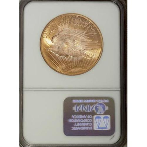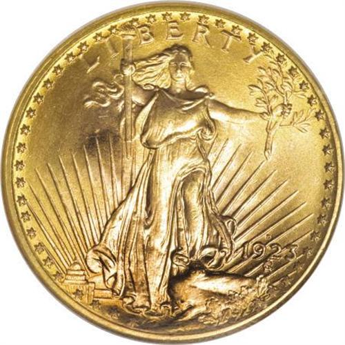 <B>1923-D $20 MS66 <img src="/images/star.gif" width="10" height="10" alt="" border="0"> NGC.</B></I> A gorgeous Premium Gem with original khaki-gold toning and remarkably unabraded fields and devices. Although the third party census and population data indicates others have been certified finer, it hardly seems possible when viewing the present coin.<BR><BR><B>Coin Engraver:</B> Augustus Saint-Gaudens<BR><BR><b>Shipping:</b> Coins & Currency (<a target="_blank" href="http://www.heritageauctions.com/common/shipping.php">view shipping information</a>)