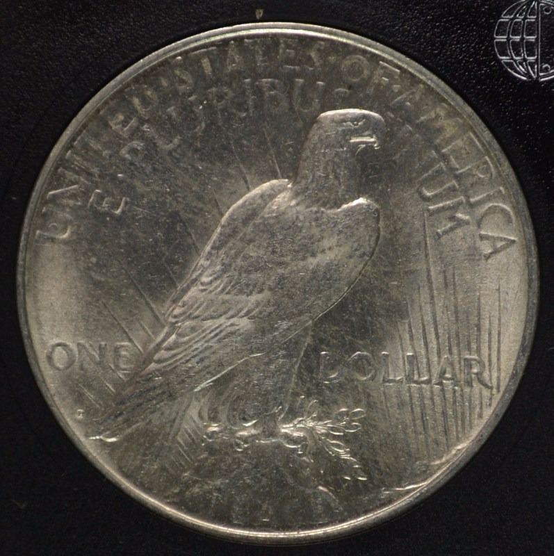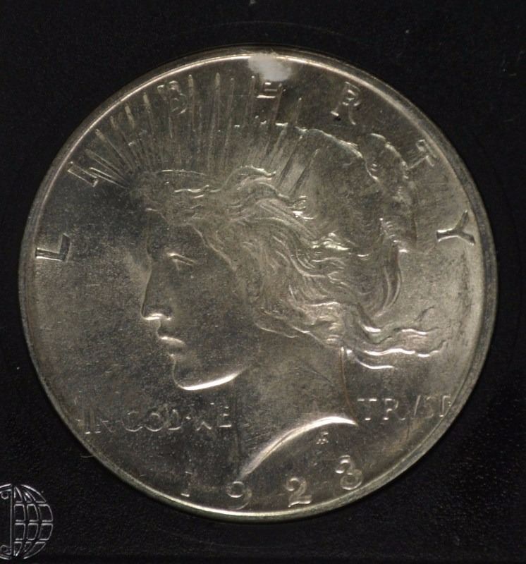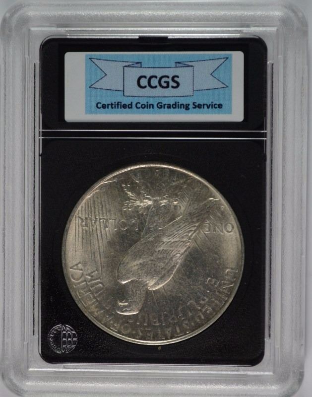 1923-D PEACE SILVER DOLLAR, CCGS CHOICE BU, SEMI-KEY