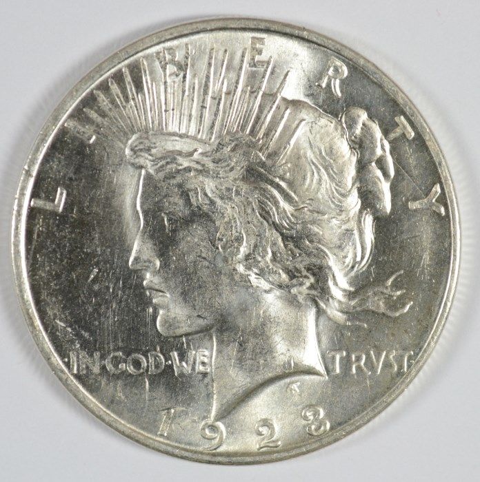 1923-D PEACE SILVER DOLLAR, MS-63+ BLAST WHITE