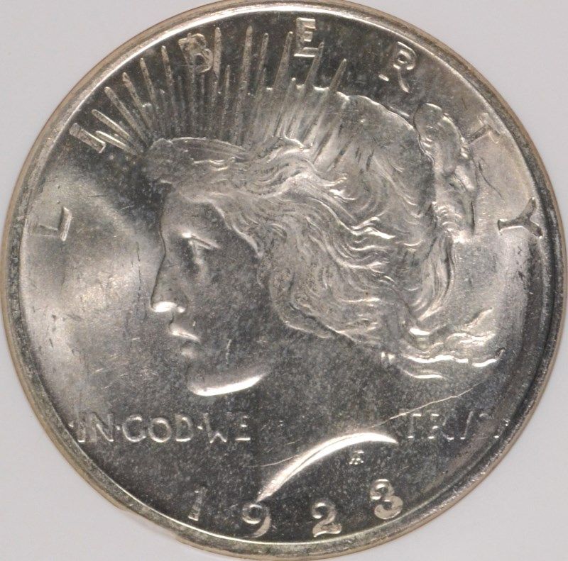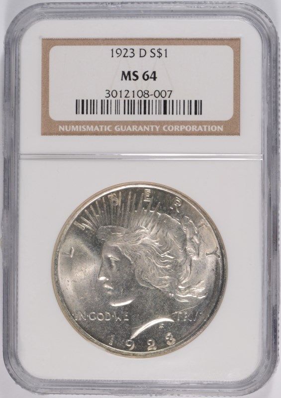 1923-D PEACE SILVER DOLLAR, NGC MS-64 WHITE AND NICE!