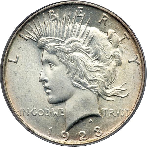 1923-D Peace Dollar. PCGS graded MS-64 PQ. Nice gold toning on the reverse (PCGS # 7361) .